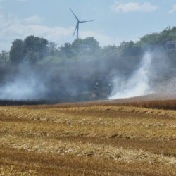 Doch kaum war dieses Feuer halbwegs unter Kontrolle, kam gegen 16.35 Uhr bereits die nächste Alarmierung. Also fuhren mehrere Feuerwehrautos, die in Kersch nicht gebraucht wurden, nach Udelfangen. Auch dort brannte ein großes Feld lichterloh. Die Rauchsäulen sind schon von Weitem zu sehen. Weitere Kräfte aus den Umliegenden Gemeinden kamen ebenfalls zum Einsatz.