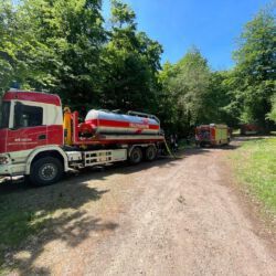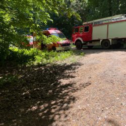 Anwesenheit: Wehrleiter, DRK, Polizei, Löschhubschrauber der Polizei