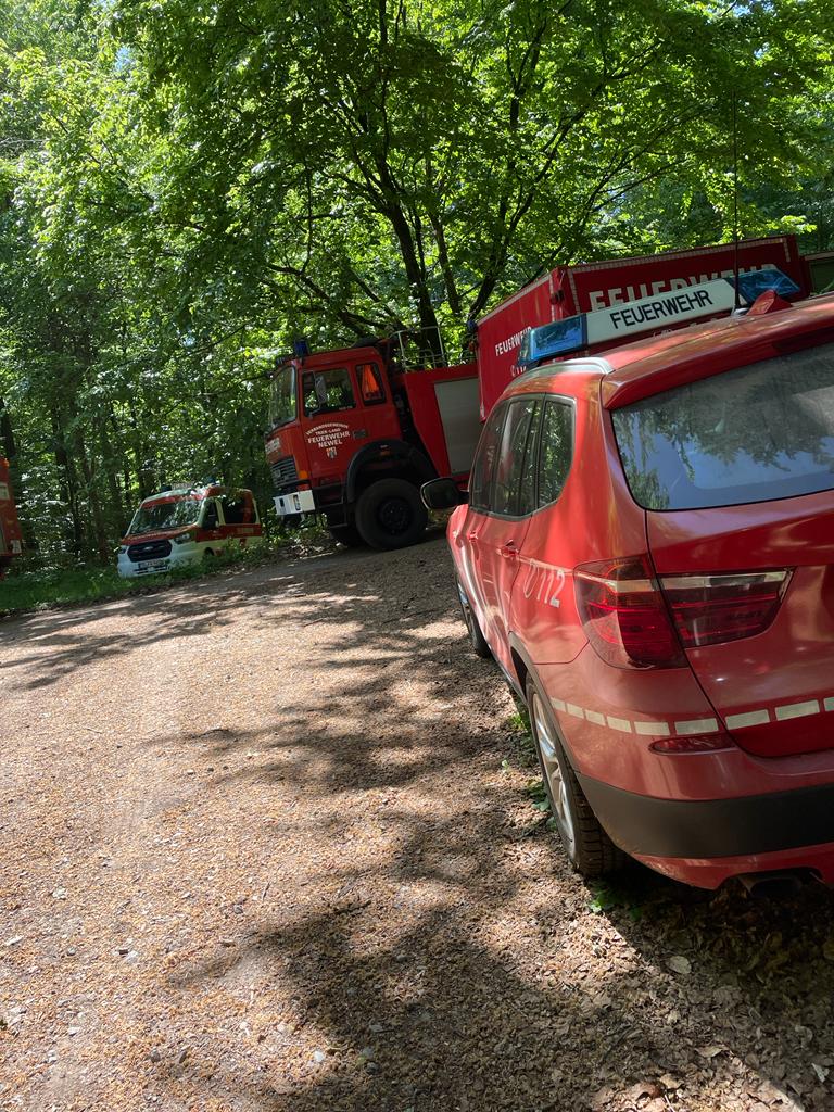 Anwesenheit: Wehrleiter, DRK, Polizei, Löschhubschrauber der Polizei
