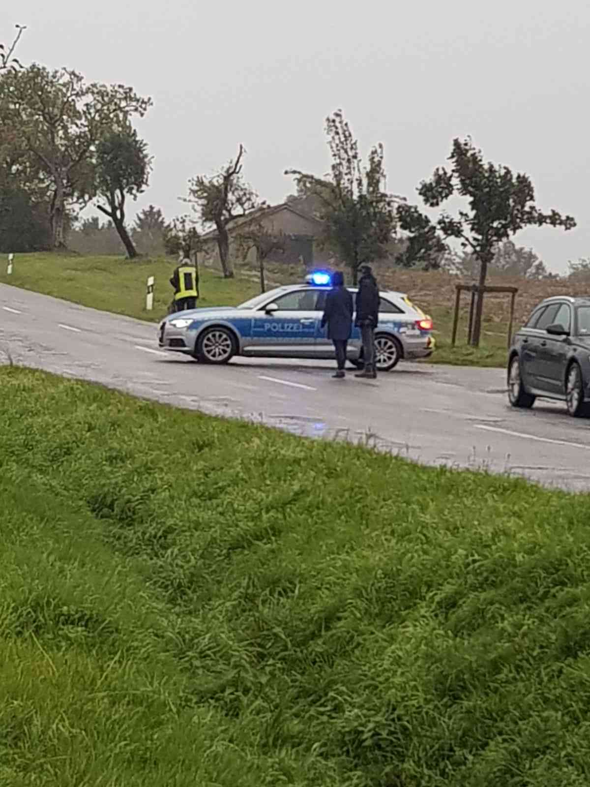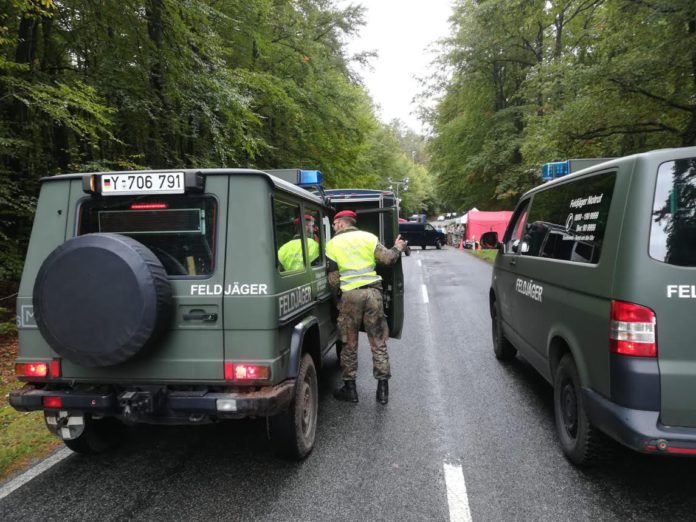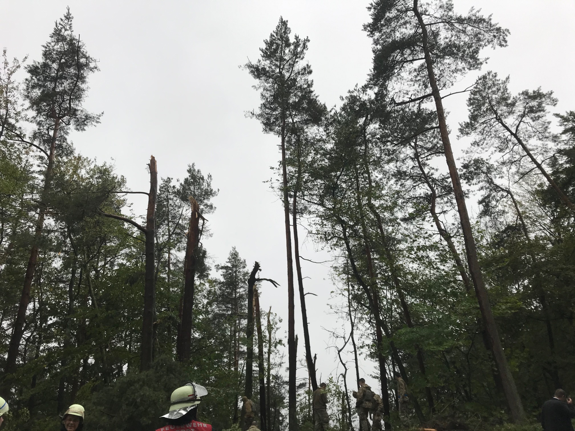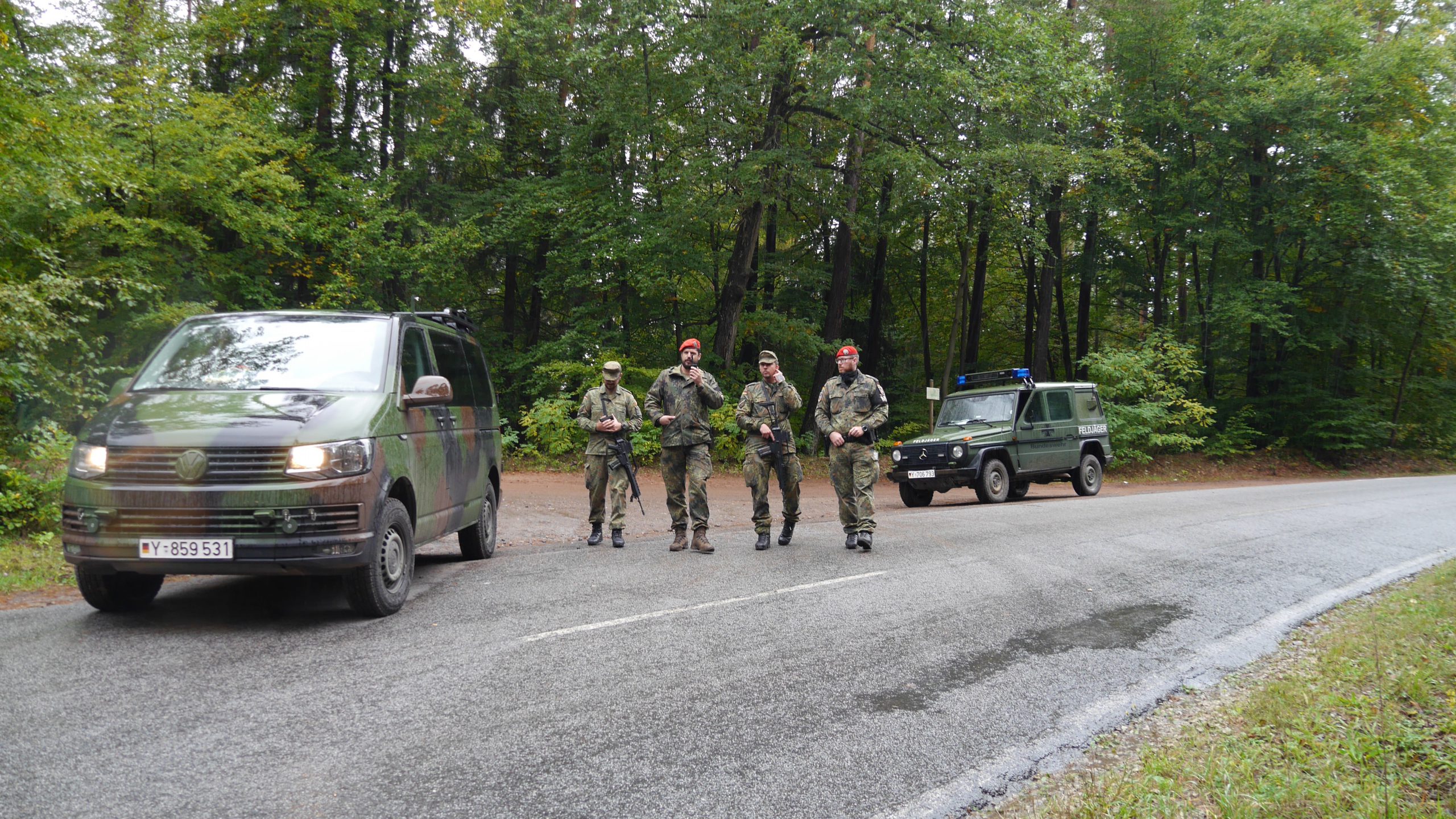 Solange ist die K 34 auch voll gesperrt. Von beiden Seiten der Sperrung stehen Soldaten der Bundeswehr uns sichern die Sperrungen zusätzlich ab. Auch sämtliche Landwirtschaftswege und Waldweg sind bewacht und gesperrt.