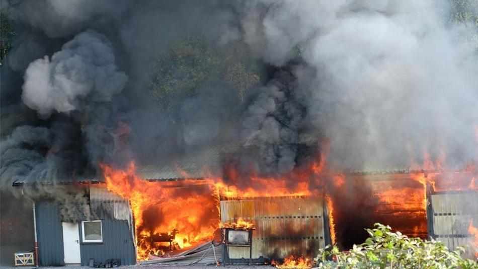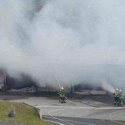 In der Halle befanden sich Werkräume, Maschinen und ein Gabelstapler, sowie Baumaterialien. Alles wurde ein Raub der Flammen und verbrannte. Eine dichte und dunkle Rauchwolke machte sich um den Brandort breit. Diese war schon von weiter Entfernung aus sichtbar.
