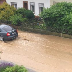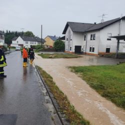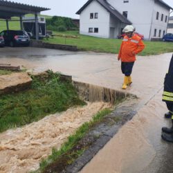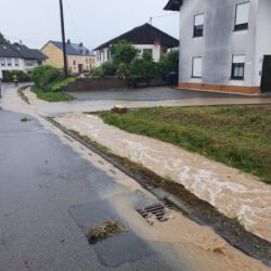 In Folge eines Starkregenereignisses kam es in der Mülchenstrasse zu einer Überflutung. Der Bach schwoll in kürzester Zeit so stark an, das die Durchlässe die Wassermassen nicht mehr fassen konnten. Zudem war der Einlauf durch Unrat teilweise verstopft. Dank den Anwohnern, die rechtzeitig die Feuerwehr alarmierten und eigenständig bereits den Einlass freiräumten konnte eine größere Überflutung in der Ortslage verhindert werden. Dies ist auch dem schnellen Eingreifen des Bauhofes zu verdanken, der ebenfall in der Ortslage im Einsatz war.