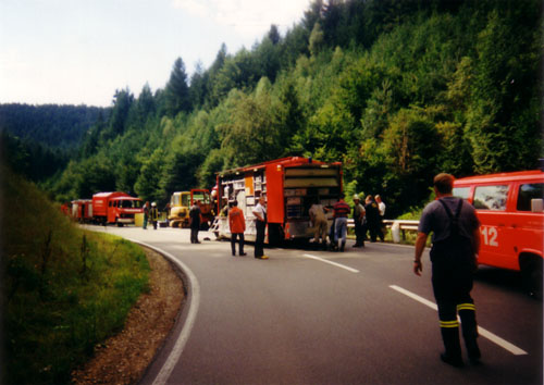 Anwesenheit: DRK Ehrang; Polizei Schweich; Untere Wasserbehörde; Fa. Horsch; Fa. Gesellchen; Fa. Bouss; Strassenmeisterei; Fa. Steil mit 2 Kränen