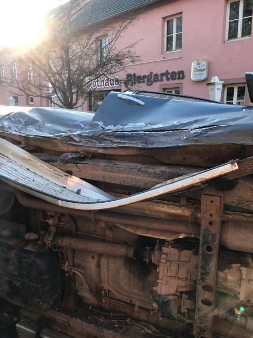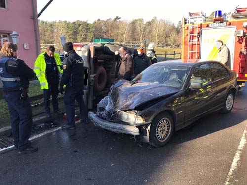 Ein Pick Up, besetzt mit einer Familie , darunter Mutter und zwei Kinder, krachte mit einem BMW, in dem ein Fahrer saß, zusammen. Der Aufprall war derart heftig, dass der Geländewagen zur Seite kippte. Dabei wurden alle vier Menschen verletzt und ins Krankenhaus gebracht.